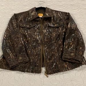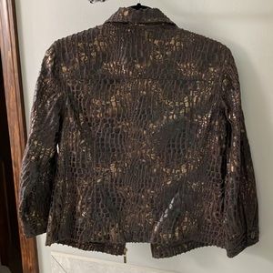 Beautiful brown/copper light weight jacket with 3/4 sleeves. Jacket is lightweight and great for spring. Jacket is washable and gently worn. Looks new.