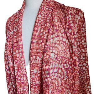 Ruby Rd Cardigan Women Size LARGE Orange Red Mesh Lace Shrug Open Front Boho