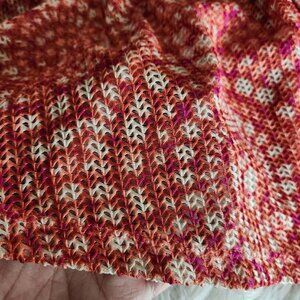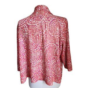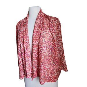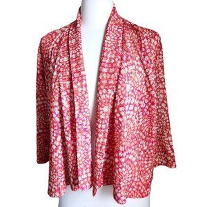Ruby Rd Cardigan Women Size LARGE Orange Red Mesh Lace Shrug Open Front Boho.