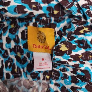 Ruby Rd Casual Button Up Long Sleeve Shirt Womens Size 8 Brown Blue