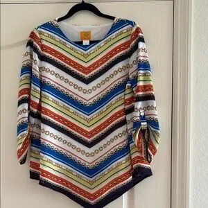 Ruby Rd. Chevron Colorful Chain Pattern Top