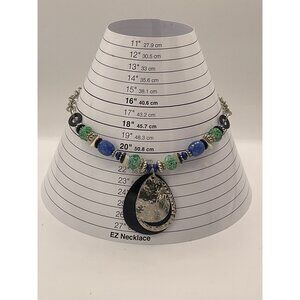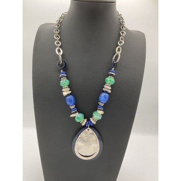 Ruby Rd Chunky Statement Necklace Green & Blue Beads Silver Tone Chain