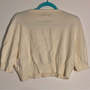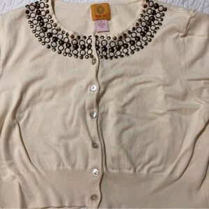 Ruby Rd Cream Cardigan with Embellished Neckline | Size XL | Elbow-length sleeve