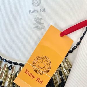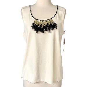 Ruby Rd. Cream Ribbed Beaded Tassel Sleeveless Top