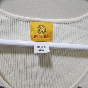 Chic cream tank top by Ruby Rd. Features a sleeveless design. Perfect for layering or wearing alone.