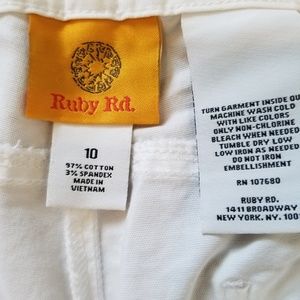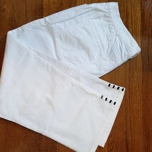 NWOT Ruby Rd. White Crop light weight pants. Size 10. Has black and white accent on outside bottom of leg with 2 " slits