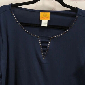 Ruby Rd Dark Blue 3/4 sleeve with silver Studs XL