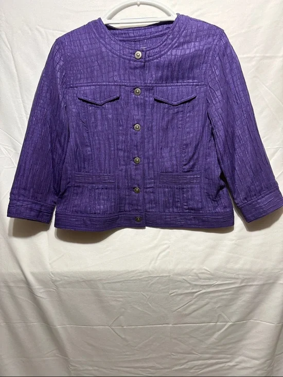 Ruby Rd. Deep Purple Textured Button-Front Jacket