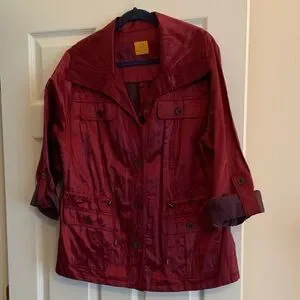 Chic jacket with button front. Features practical pockets and roll-up sleeves. Perfect for versatile styling.