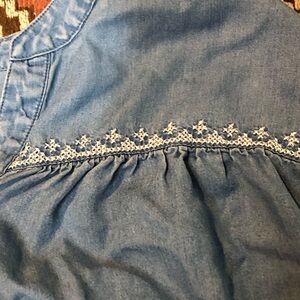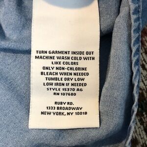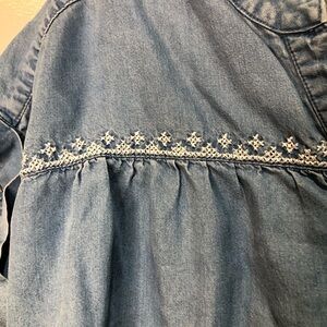 Ruby Rd. Denim Embroidered Tie Button Blouse