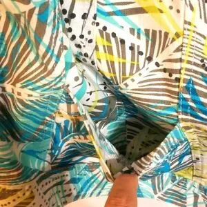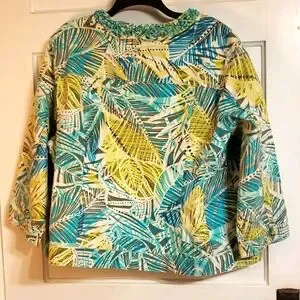 The snap closure and 3/4 sleeves make it perfect for layering in any season, while the machine washable fabric ensures easy care. This jacket is ideal for casual occasions and adds a tropical touch to any outfit. It's available in size 20 and is a great addition to any wardrobe