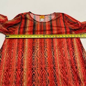 Ruby Rd Embellished Top Women’s XL Red Black Gold Metallic Print 3/4 Sleeve Tuni