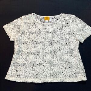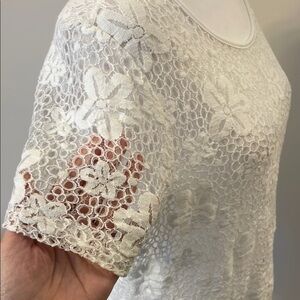Ruby Rd Embellished White Short Sleeve Floral Lace Blouse 12 EUC Layer