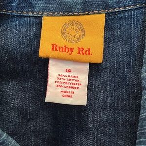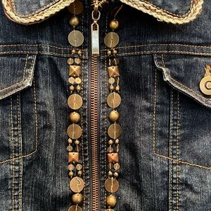 Women size 14 denim zip front with dark metal embellishments on each side of zipper