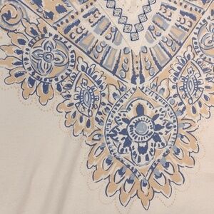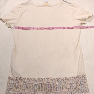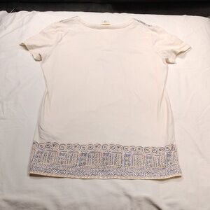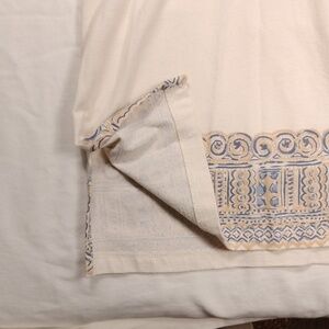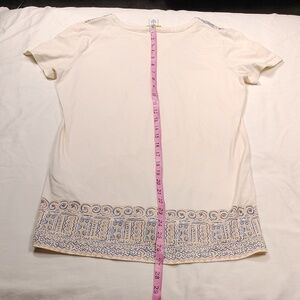 Elegant cream top with intricate blue embroidery only around the collar Perfect for casual outings or special occasions.
