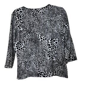 Ruby Rd. FAVORITES Shirt M Black White Abstract V Neck Pullover Size Medium