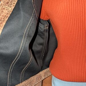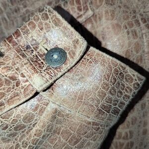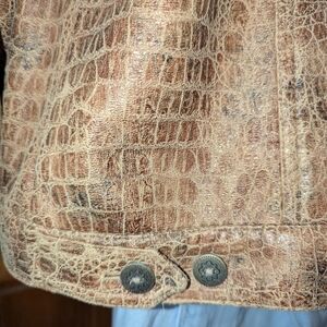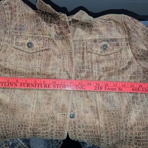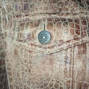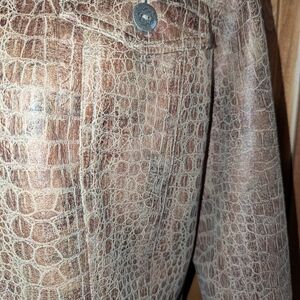 Ruby Rd Stylish brown, croc-embossed jacket. Faux leather look with a slight sheen and detailed metal buttons. Perfect for layering, unisex styling.