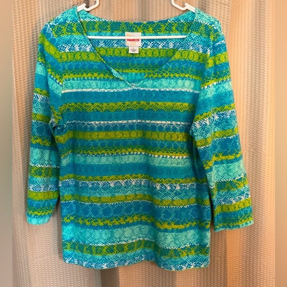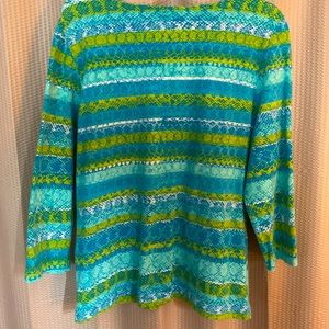 Like new, excellent condition. This top is great for spring and summer nights with 3/4 sleeves. Measures 24” in length.