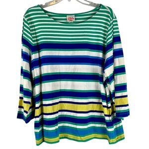 Ruby Rd. Favorites Striped 3/4 Sleeve Top 2X. There is light staining. Please see photos. Measurements in photos. In good, pre-loved (used) condition.