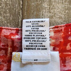 This vibrant Ruby Rd. Blouse features a striking red and white pattern. The blend of cotton and polyester provides comfort and style.
