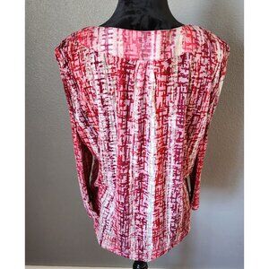 Ruby Rd. Favorites Womens Blouse Large Sheer Red All Over Print 3/4 Sleeve