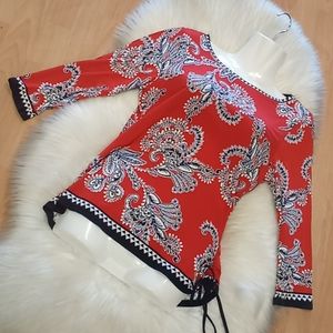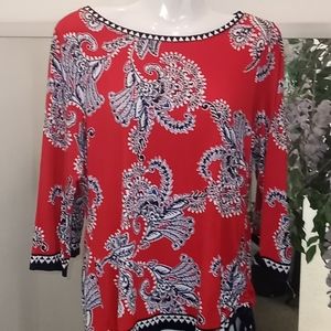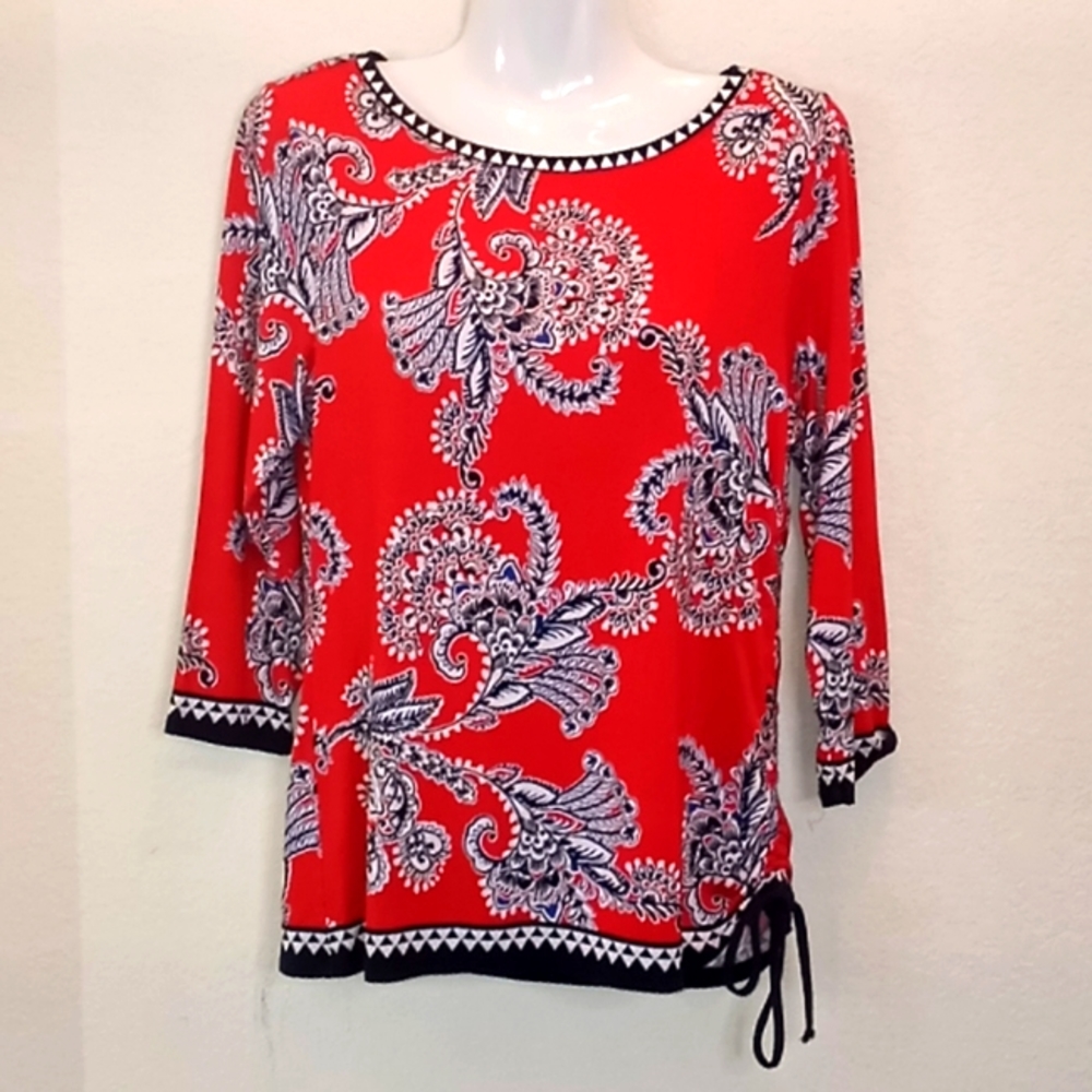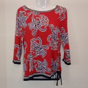 NWOT. Small Multicolored Floral Print Ruby Rd. Jersey Ruched Tunic Top..3/ 4 Sleeve.