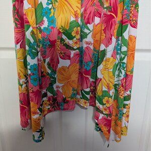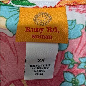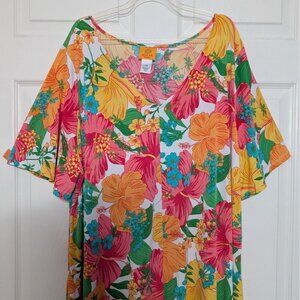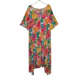 Ruby Rd Floral Midi Dress Womens Size 2X White Colorful Hibiscus Tropical