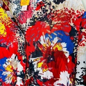 Ruby Rd. Floral Multi Colored Long Sleeve Button Front Semi-Sheer Top Size 18W