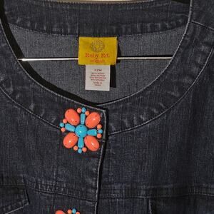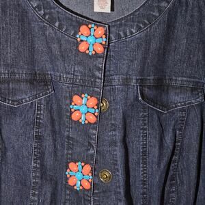 Ruby Rd Flower Button Jean Jacket Size 22W Ramie Cotton Blend Western Country