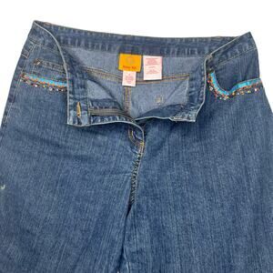 Ruby Rd Fringe Denim Capri Hem Beaded Embroidered Boho Pants Size 8