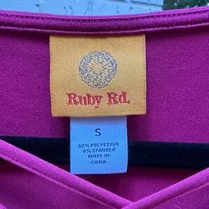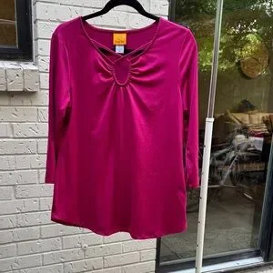 Chic fuchsia blouse with keyhole neckline. Ideal for versatile styling.