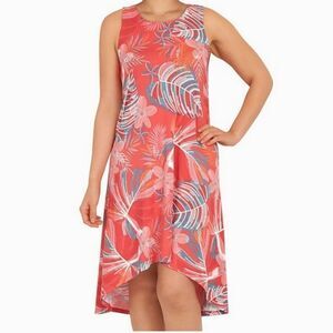 Ruby Rd. Geranium & Pink Tropical Sleeveless High-Low Midi Dress Size XL