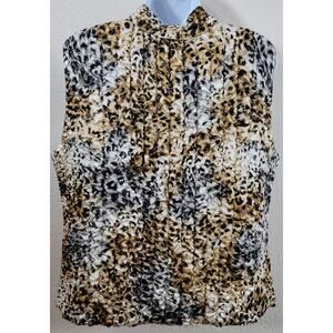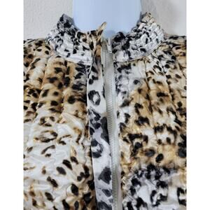 Ruby Rd. Gold White Black Animal Print Puffy Vest Large Sleeveless Full Zip Soft