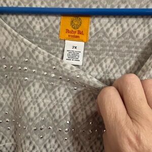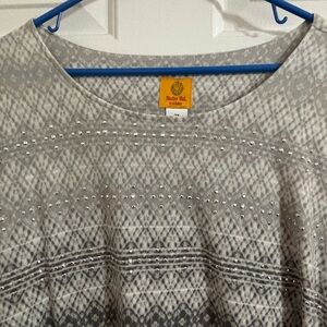 Elegant gray top with sparkling embellishments. Perfect for any occasion.