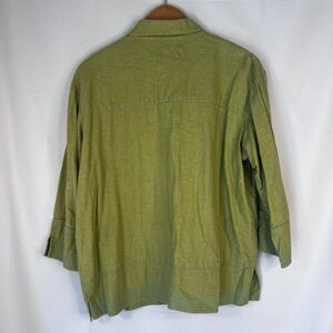 Ruby Rd Green Linen Blend Embroidered Trim Button Front Blouse Size 10