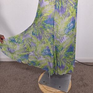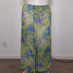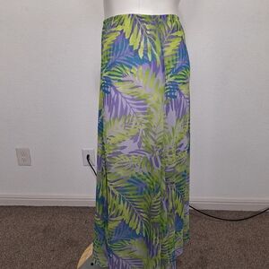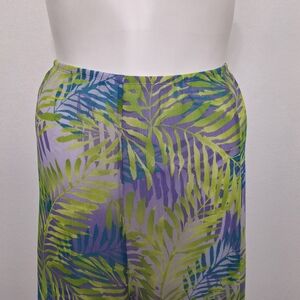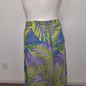 Ruby Rd. Green Purple Tropical Leaf Print Bohemian Pull On Maxi Skirt Size 16