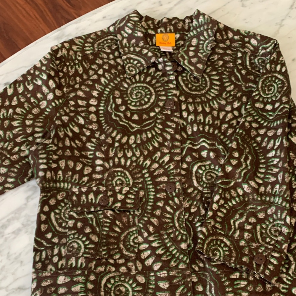 Stylish top with green and brown patterns. Perfect for a bold statement. Barely worn