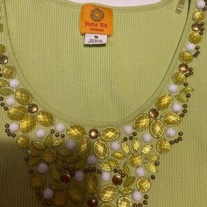 Ruby Rd. Green and Gold Embellished Tank