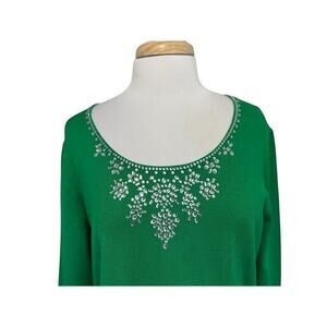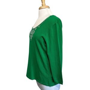 Ruby Rd Holiday Green Sweater Size XL Embellished Long Sleeve Women