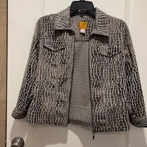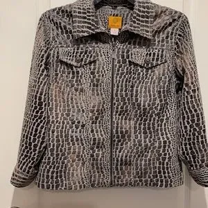Beautiful Jacket, gorgeous print and texture. Two front pockets… By Ruby Rd.. like new condition. Dress up or down. Grey , black browns..