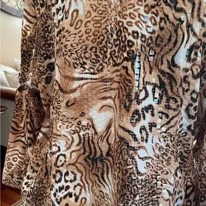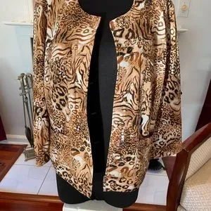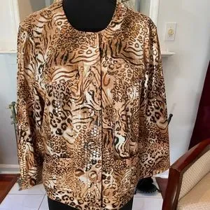 Really nice light weight animal print jacket. Polyester, spandex. In excellent condition.
