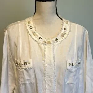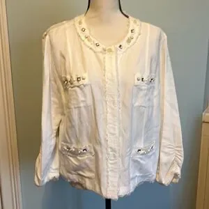 White Button Down Jacket with Tan and Cream Color Stones. By Ruby Rd. Size 16