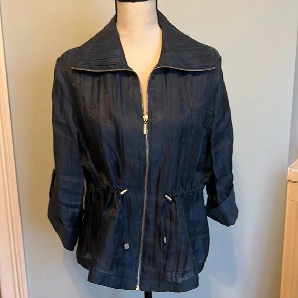 Navy Blue Zip Up Jacket. Elastic Waist. Mid Sleeves. By Ruby Rd. Size 12