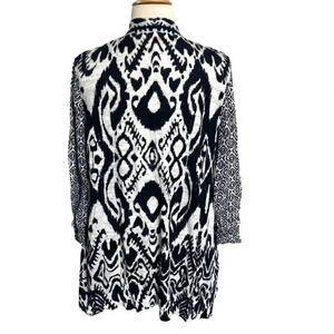 Ruby Rd. L black & white boho print cotton rayon blend open lite weight cardigan