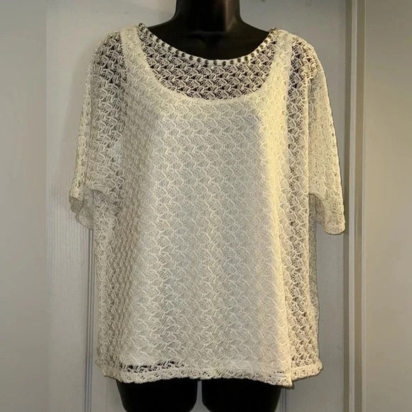 Ruby Rd Laced Blouse lined/tank top in excellent condition 100% polyester 1723