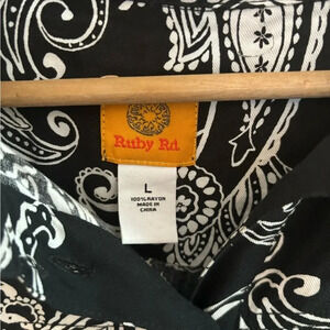 Ruby Rd Large Black and White Paisley Button Down 3/4 Sleeve Top