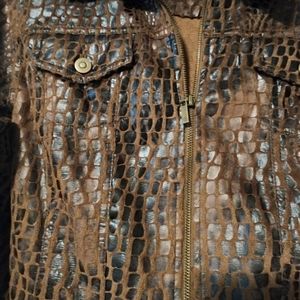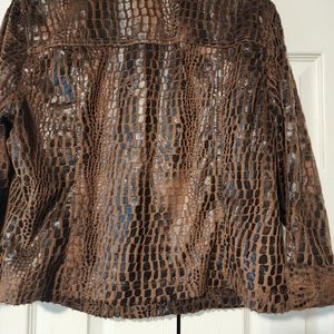 Ruby Rd. brown animal print. Gorgeous jacket with minimal wear on collar and cuffs as shown in pics. It is large petite but has no size tags. Please make sure measurements work for you. Pit to pit 22 inches. Pit to bottom 11 inches. Lightweight with 2 usable front pockets.