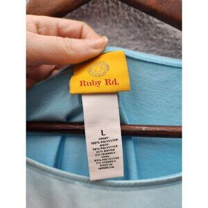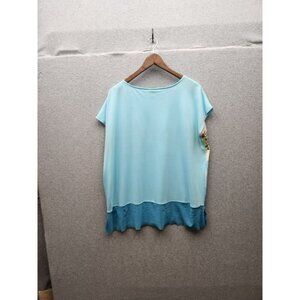 Ruby Rd. Large Womens Scenic Print Top With Blue Hem & Short Sleeves