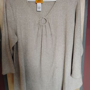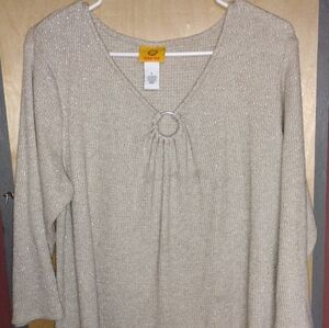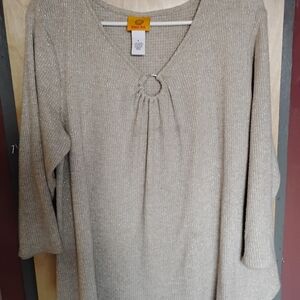 Ruby Rd Large Women's Top metallic sparkly,keyhole neck