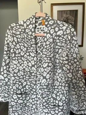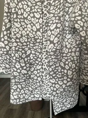 Ruby Rd. grey and white leopard animal print sweater. Like new condition. Minimal flaws (if any). Has pockets and button detail on the sleeves.